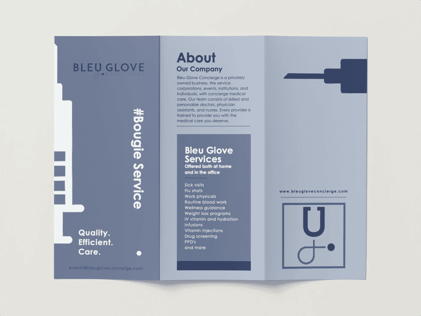 Bleu Glove Concierge is a luxury health and wellness company that provides premium vitamin infusions and IV therapy experiences. As part of the team, I contributed to shaping the brand’s visual presence, expanding its reach, and supporting in-person events. My role combined design, social media marketing, influencer outreach, and hands-on event coordination.